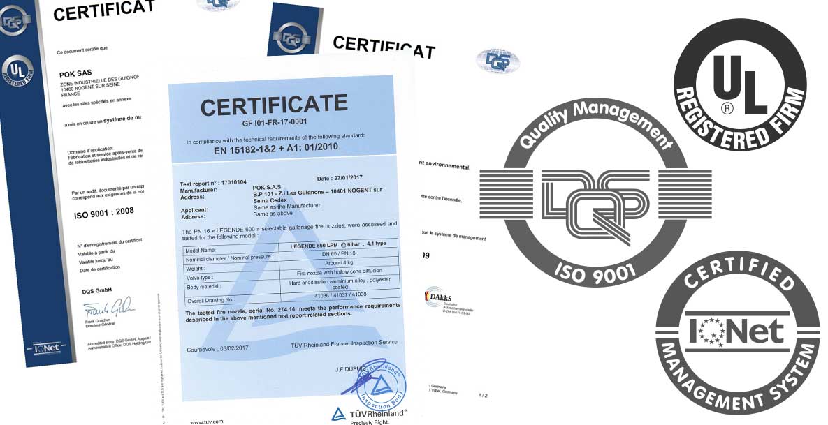 In order to have the quality of its products recognised and to satisfy the demands of its customers, POK® has its nozzles certified in several countries (Poland, Germany, China, Russia, etc.). On the European market, the EN standard is one of the most requested.